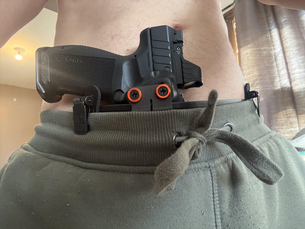 Works with any inside-the-waistband holster you already own. No proprietary attachments. No modifications.